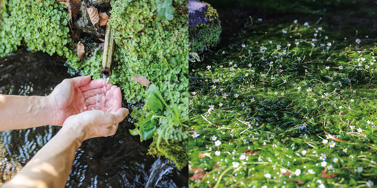 水源地からは1日7,000tの湧き水が通年12度前後と安定した水温で湧き出ています。