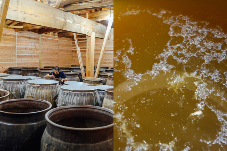 昔ながらの製法で麹造りから始まり、酒精発酵・酢酸発酵に5ヶ月。そして熟成に約8ヶ月。